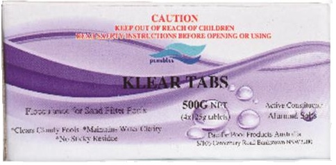 Klear Tabs provide an extra layer of pool water filtration by capturing very fine particles. Ideal for use in sand filters to quickly clear pool water and enhance overall sand filter performance.