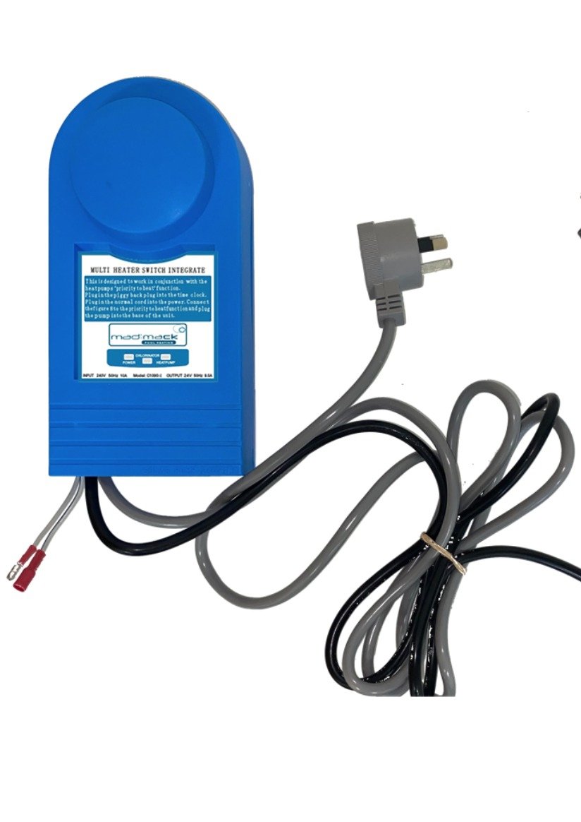 The Madimack MJ Control Box is a device that allows heat pump control override of a chlorinator/dosing system/timer, using the same filtration pump for heating. Save energy by not having to run another pump to initiate the pool heat pump.